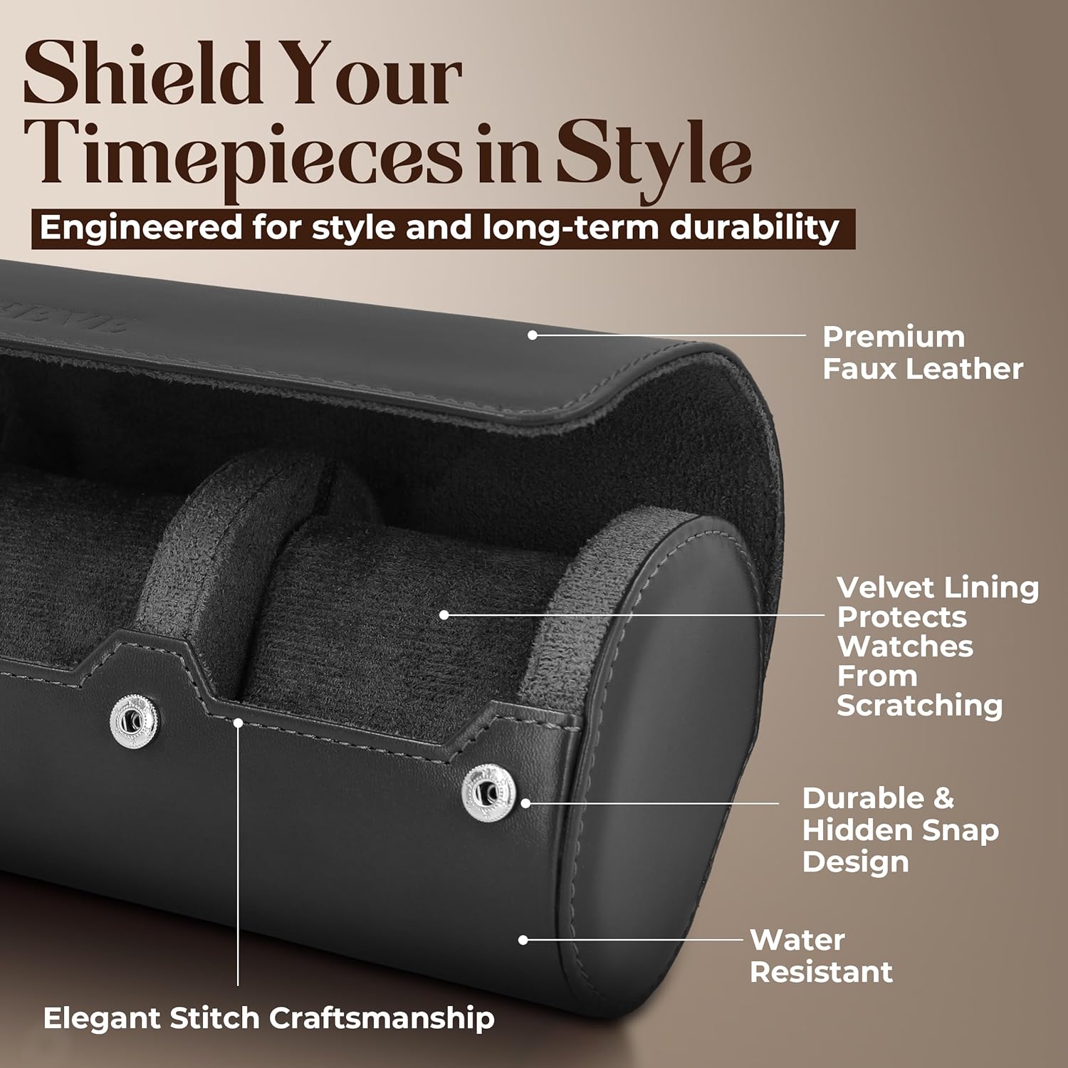 • DURABLE PROTECTION: Keep your watches secure with sturdy case construction and a reliable snap closure, safeguarding your cherished timepieces from dust, scratches, and impacts. Soft interior lining with plush velvet protects your watches from scratches and scuffs, keeping them in pristine condition. Designed to protect your watches so you can MAKE EVERY MOMENT A LUXURY.